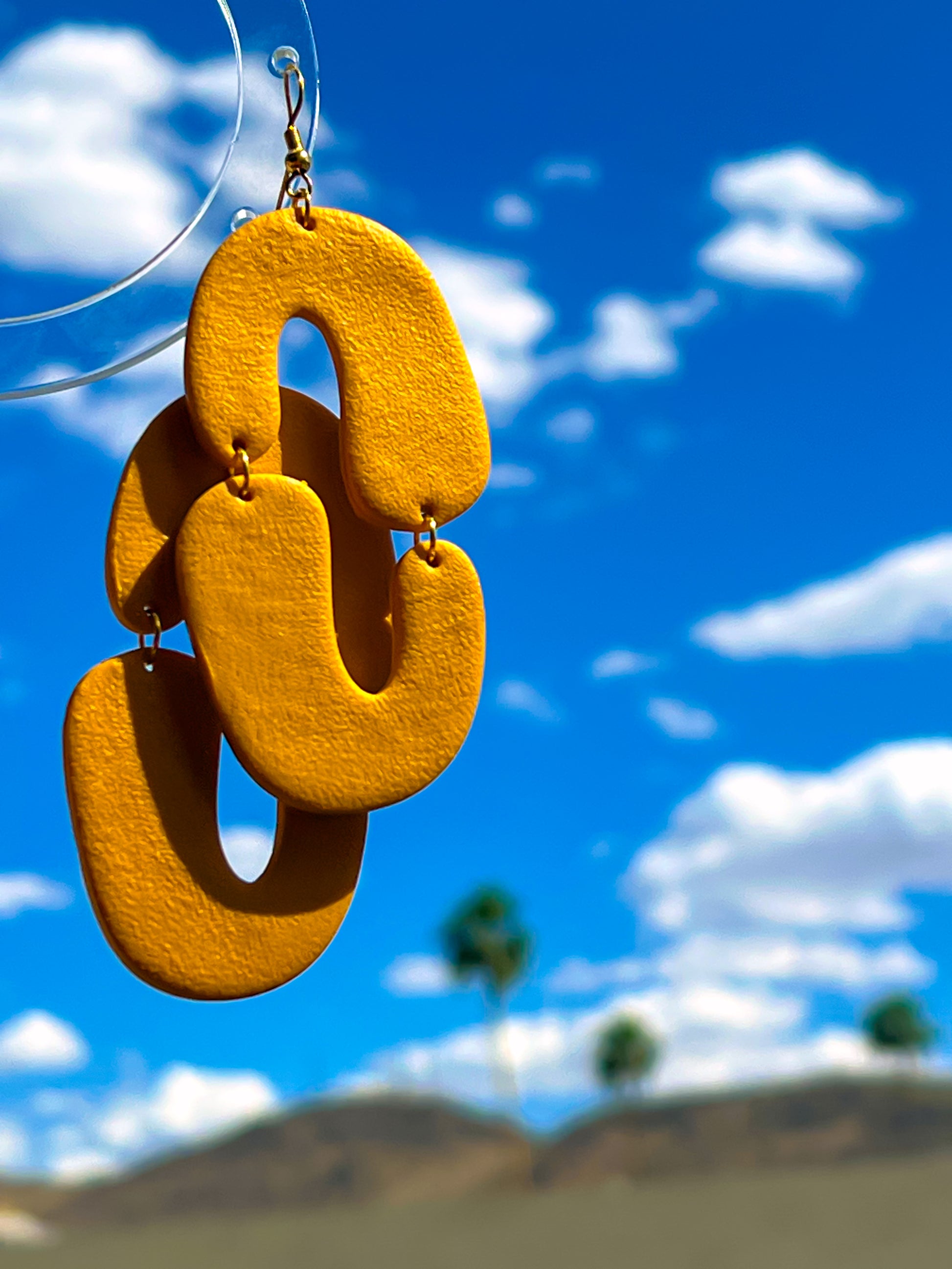 These arc-shaped dangles bring quiet confidence with every curve. Textured in mustard or deep red, they’re matte, grounded, and made to make a statement.